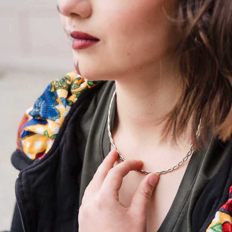 Trenzada Choker, handcrafted in Mexico with genuine sterling silver, features an elegant braided design. A versatile accessory suitable for both casual and formal occasions. Choker Sterling Silver 0.925, Diameter 10.9 cm, Width 5 mm, Weight 24.2 Grams